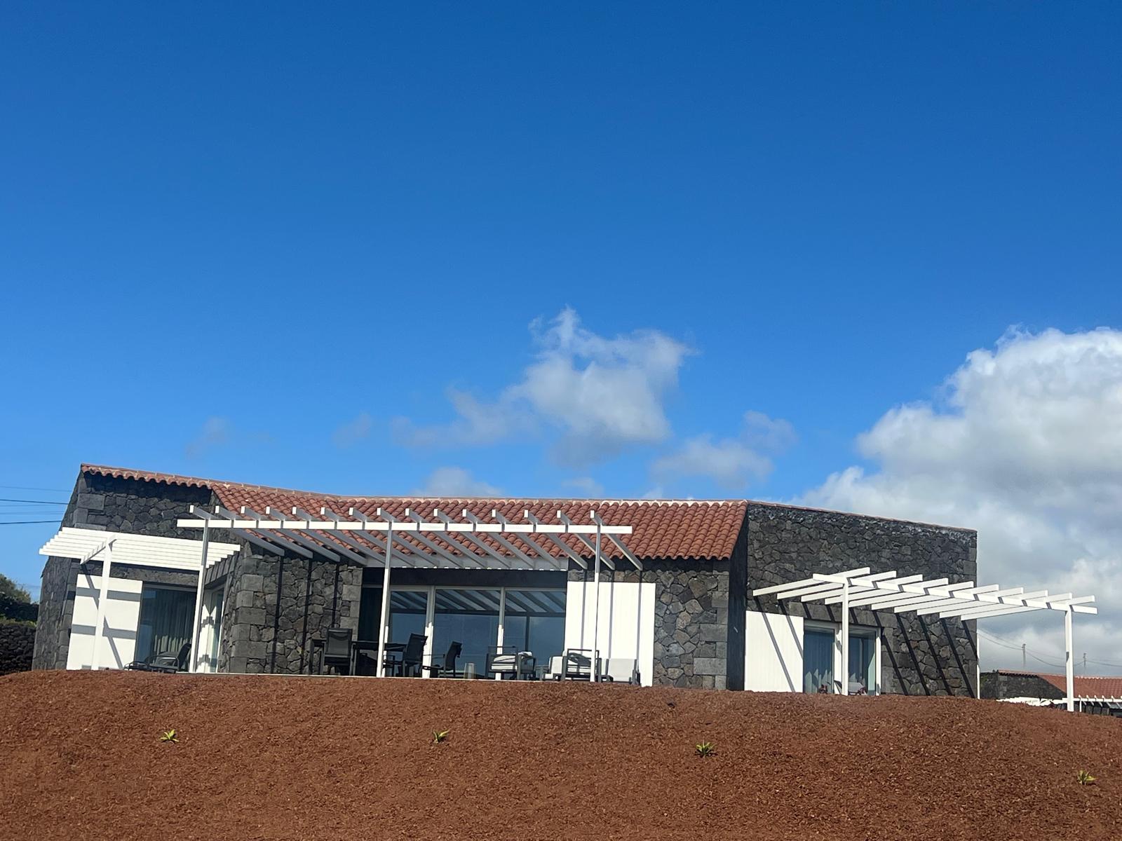 Vila T1 vista mar com um quarto e casa de banho privativa, sala de estar com sofá-cama e área de refeições, e terraço privativo equipado com mesa exterior e espreguiçadeiras.